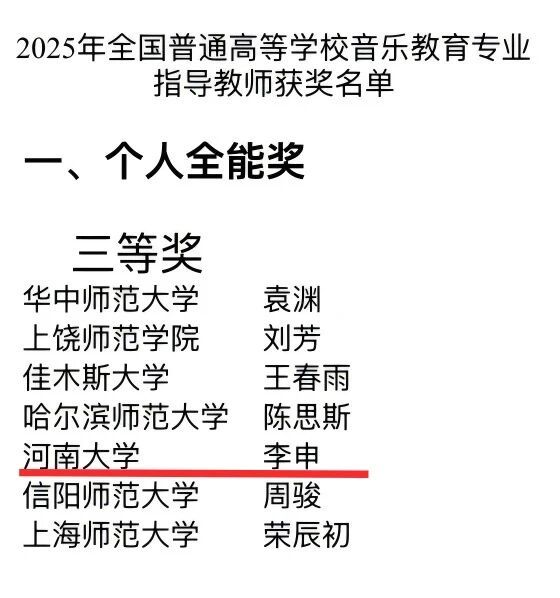 近日,教育部2025年全国普通高等学校音乐教育专业本科学生和教师基本功展示活动成绩揭晓,河南大学音乐学院斩获大奖9项。