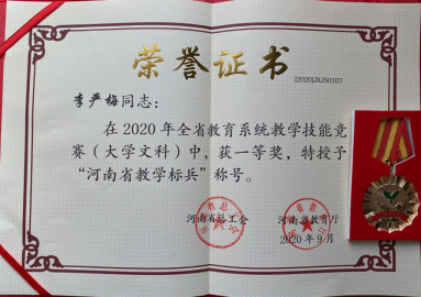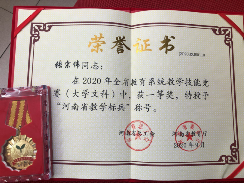 李严梅、张宗伟两位老师经过初赛、复赛、决赛等三个环节,最终获得大学文科组一等奖并被授予“河南省教学标兵”荣誉称号。