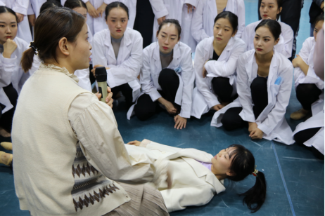 至善舞团展示了舞蹈系青年骨干教师李珂珏创作的抗疫主题舞蹈作品《我们的妈妈》。援鄂医疗队成员对作品展现出的疫情抗击下的情感变化表示赞赏和肯定,并结合亲身经历,与在场师生就作品蕴含的抗疫精神内核进行研讨,对舞蹈演员的救助动作进行现场指导。