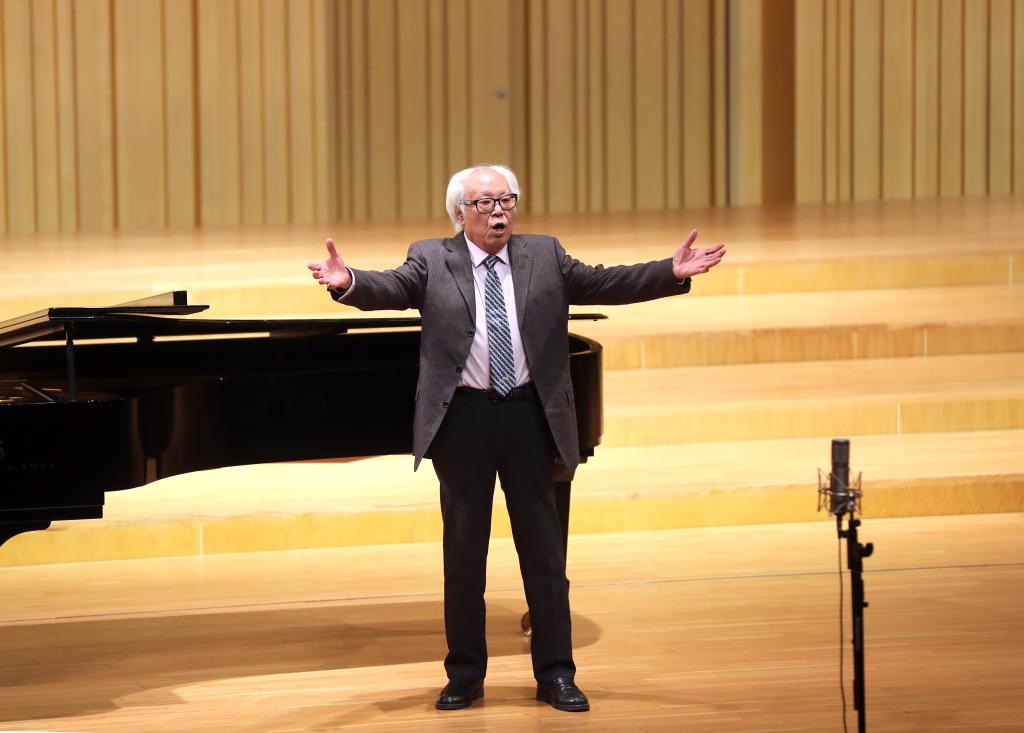 熠熠百年,昭昭征程。音乐会在河南广播电视台合唱团演唱的《在党的旗帜下》声中拉开帷幕,该作品也是璩清林教授向党百年华诞的献礼。随后,20首璩清林教授在不同时期创作的不同风格,涵盖独唱、重唱、合唱等多种形式的声乐作品由我省著名女高音歌唱家韩梅教授、黄慧慧教授,男高音歌唱家冯奔等艺术家以及河南广播电视台合唱团、郑州市人民医院合唱团等倾情献唱。音乐会在全场由璩教授亲自伴奏的《我和我的祖国》的歌声中落下帷幕。