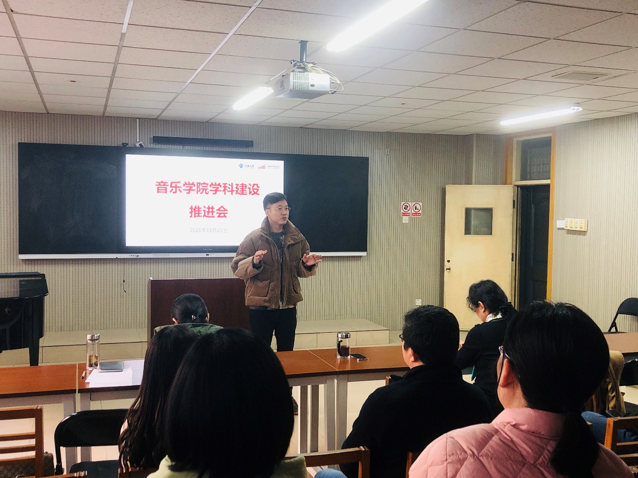 学科建设推进会在艺术楼224教室召开。院长王思琦、副院长韩梅、王新,各系主任、副教授代表及博士学位教师代表参加会议。会议由王新主持。
