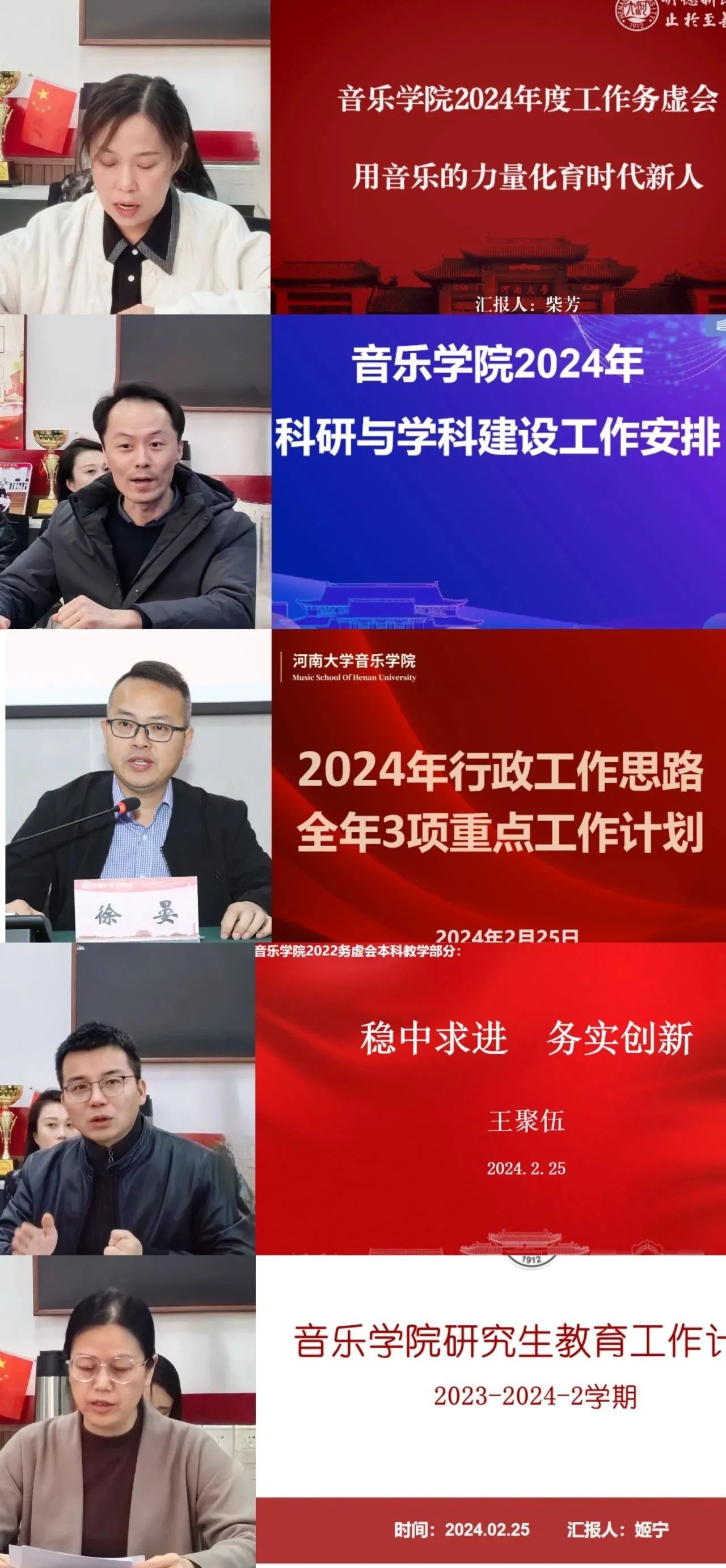 会议伊始,王志国传达了学校近期召开的系列重要会议精神,要求与会人员围绕学校重点工作,结合学院“十四五”发展规划核心指标和学院目标管理责任,安排 2024年学院工作。要求全院师生弘扬“自信、拼搏、开放、创新”的新时代河大精神,牢固树立一流理念,踔厉奋发,勇毅前行,用发展的成效来赢得尊重。