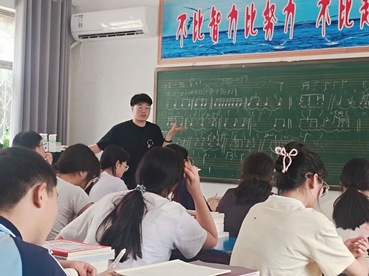 共选派徐冬艳、冯安君、王计鹏等多位多年参与此项目的教师和2名硕士研究生组成支教团,驻守潭头镇、开展支教帮扶。支教团紧扣音乐高考最新动向和科目要求精心设计课程,结合当地师生的实际需求因材施教、解答疑惑。本次培训,课程目标精准,教学活动层层递进、环环相扣,师生、生生互动交流愉悦,教学效果好,目标达成度高。支教团爱岗敬业,用心教书育人,为潭头学生输入艺术与文化的双重滋养,为潭头教育发展注入新鲜的血液,深受当地师生、学生家长欢迎。