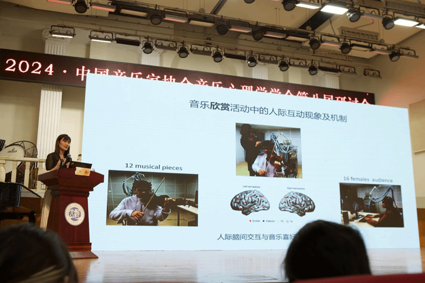 最后,宋教授简要介绍了她的团队在音乐活动中人际交互的神经生理基础方面的研究,特别是使用超扫描技术同时观测两个或多个个体在音乐活动中的脑活动变化。她的团队研究了音乐表演、欣赏和教学活动中的人际交互现象,以及这些交互如何影响对音乐作品的喜好程度。