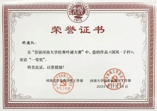 赵瑞新老师指导的《国风·子衿》、王聚伍老师指导的《潭头潭头》分别以95.1分和93.6分荣获一等奖、二等奖。