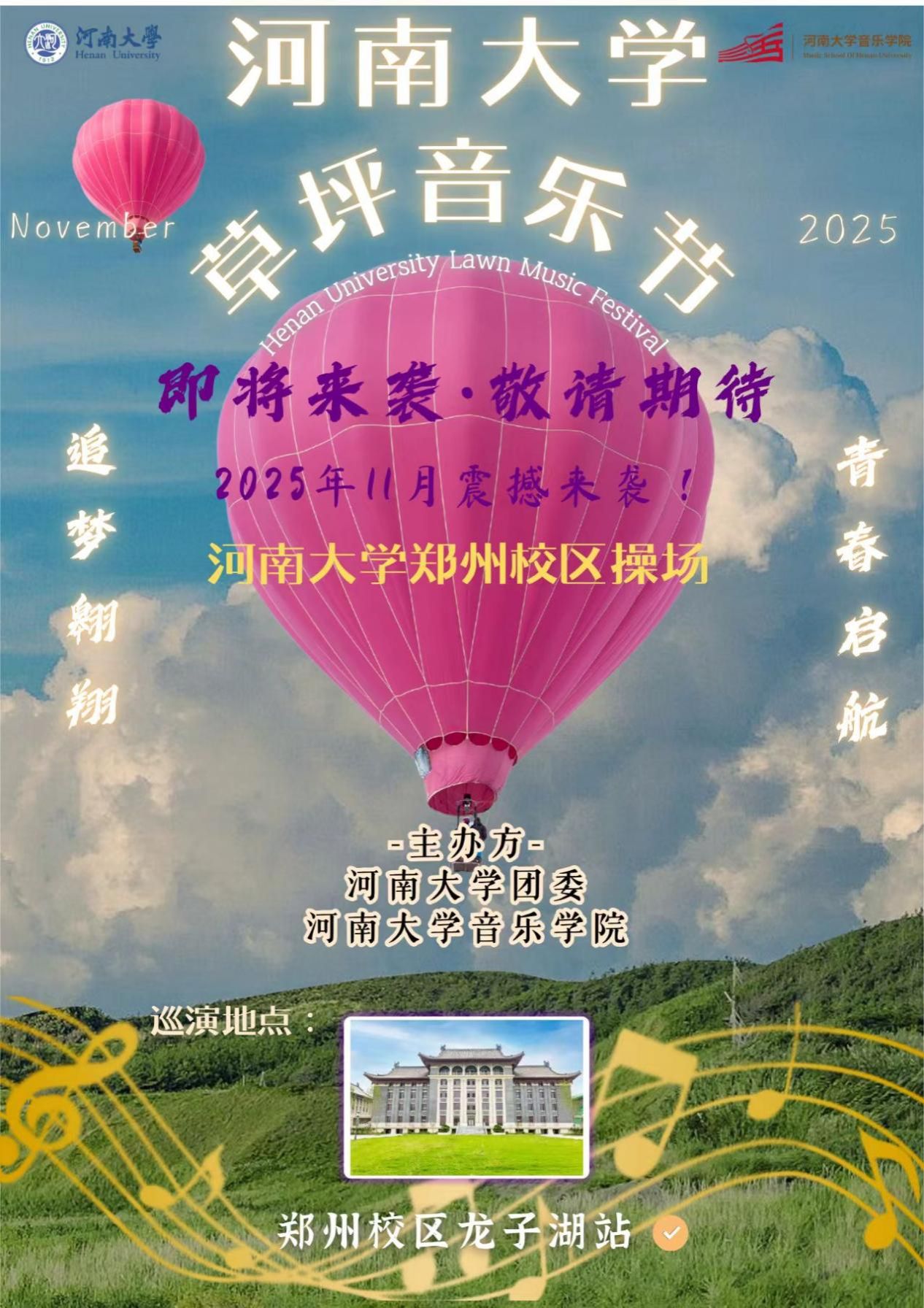当青春BGM炸响河大操场,当心跳节拍与贝斯低炮共振——"追梦翱翔,青春启航"河南大学草坪音乐节,十一月强势登陆!