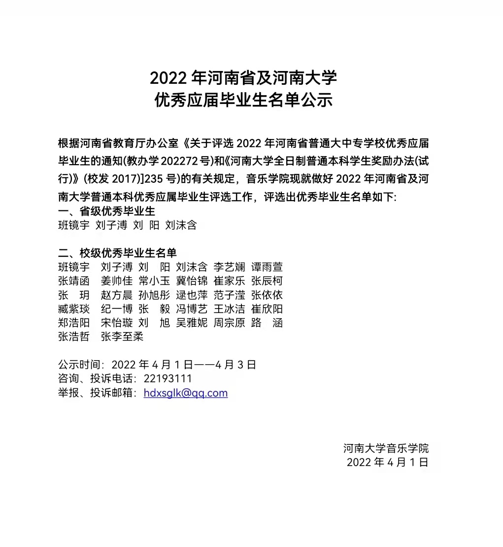 2022年河南省及河南大学优秀应届毕业生名单公示