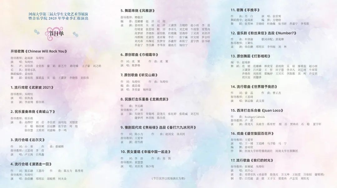 今晚锦时 不见不散 | 河南大学第三届大学生文化艺术节展演暨音乐学院2025年毕业季汇报演出