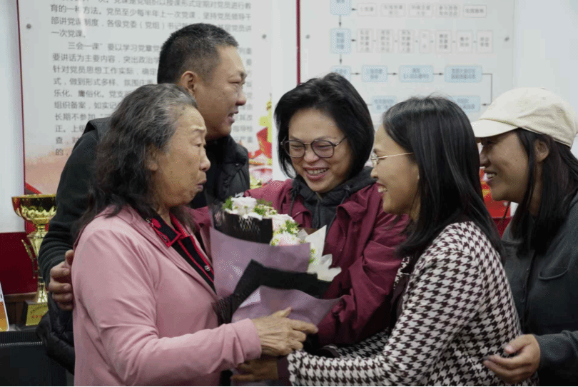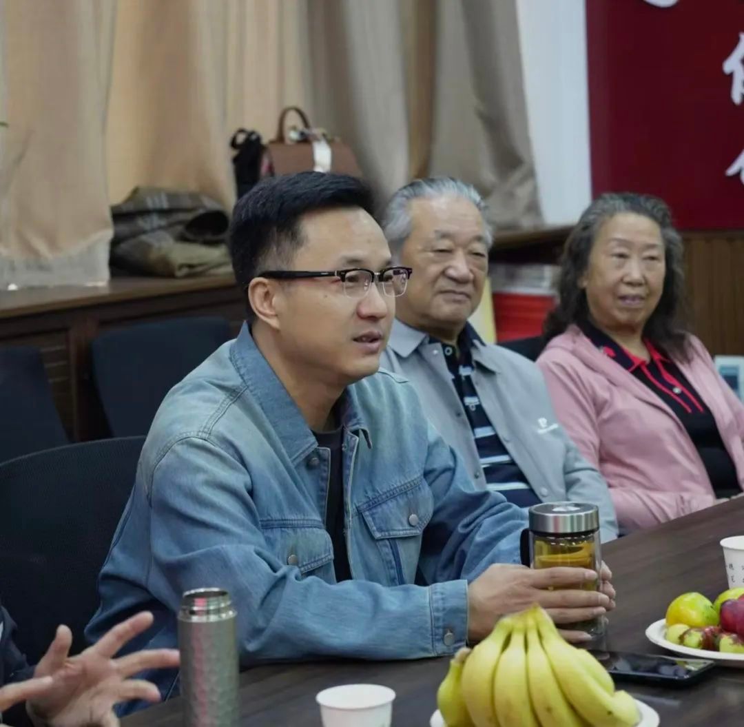 各位校友依次汇报了自己的情况。最后,老师和校友们在新艺术楼前合影留念。