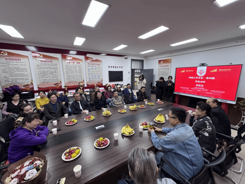 10月19日上午,音乐一系90级18位校友回到母校参加毕业30周年聚会活动,忆青春岁月,续师生情谊。出席本次座谈会的有音乐学院院长王思琦,90级教师代表朱敬修、唐瑰卿、韩梅、李社教、贾利等。座谈会由90级校友代表时明主持。