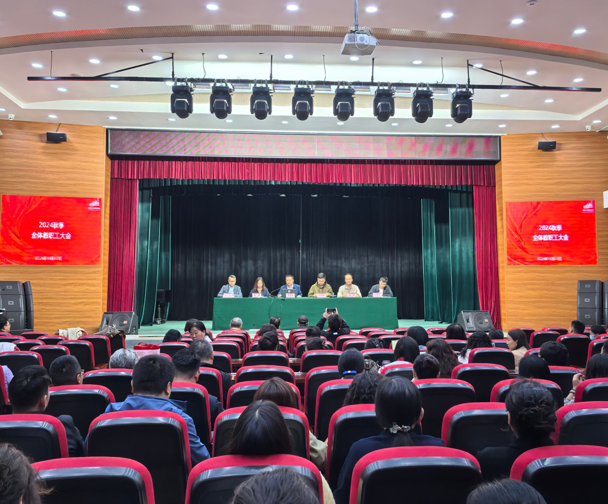 10月17日下午,音乐学院在音乐厅召开 2024 年秋季学期全体教职工大会,部署安排本学期工作。院领导班子成员及全体教职工参加会议。大会由院党委书记王志国主持。