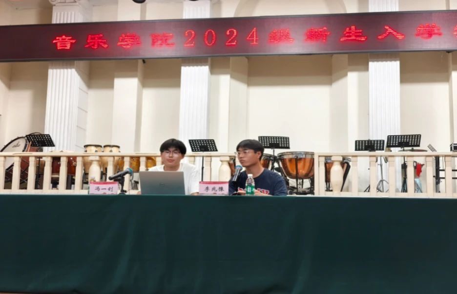 为使24级的新生进一步了解我院相关课程,作好个人规划,音乐学院教务办公室陈金鹏为大家介绍了我院的学院概况、专业特色、教务选课以及培养方案,并劝导大家提高自主学习能力及意识。