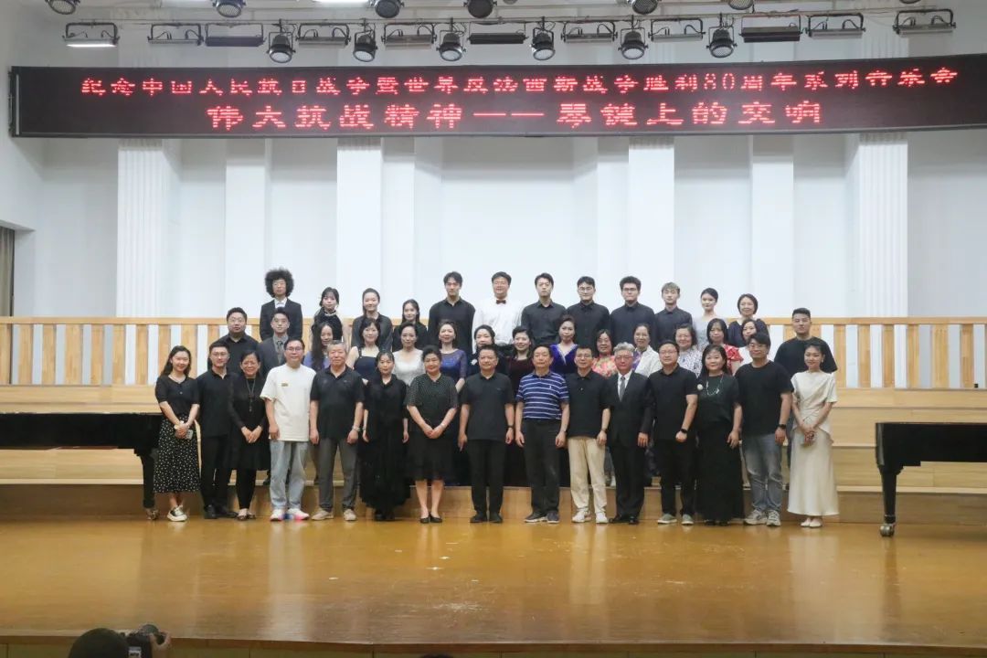 为铭记历史、缅怀先烈,6月5日晚,由河南大学音乐学院主办、钢琴系承办的“纪念中国人民抗日战争暨世界反法西斯战争胜利80周年系列音乐会:伟大抗战精神——琴键上的交响”在音乐厅成功举行。院党委书记王志国、副院长王聚伍和学院师生共同观看了音乐会。音乐会由钢琴系主任潘伟主持。