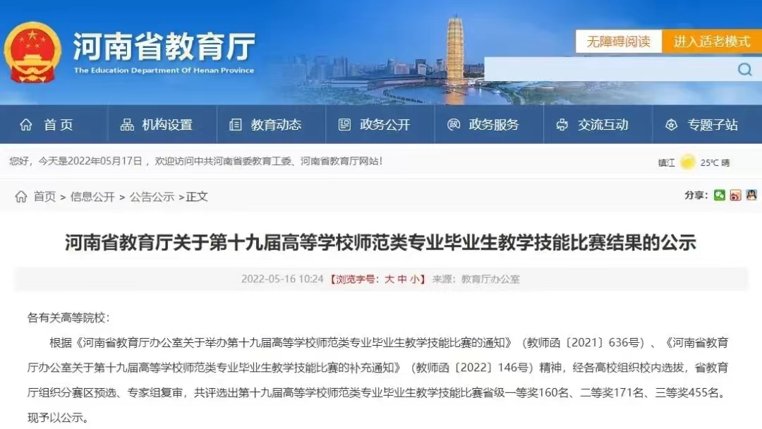 近日,河南省教育厅发布第十九届高校师范类毕业生教学技能比赛结果,我院2018级音乐学专业学生逯也萍、赵方晨在尚永娜等老师的细心指导下,经过初赛和复赛的选拔,代表我校参加决赛分获文科组省级一等奖、二等奖。