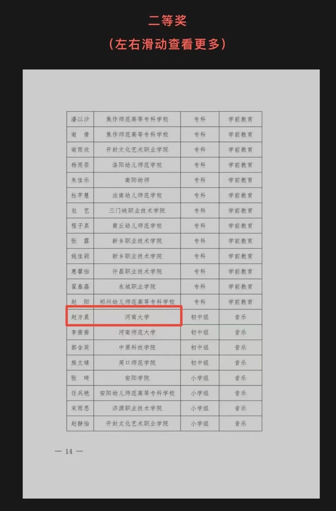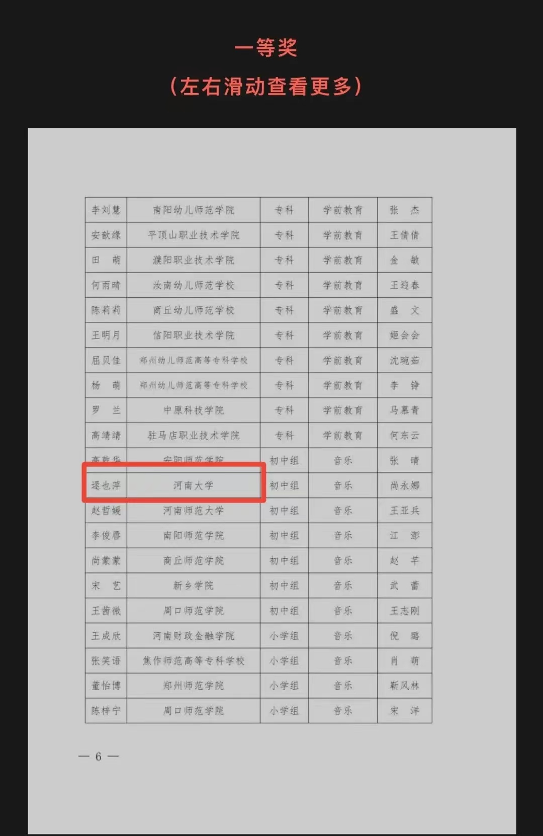 此前,在2021年6月举办的河南大学师范类毕业生教学技能大赛(省赛预选赛)中,逯也萍、赵方晨两位同学双双获得校级特等奖,尚永娜老师获得优秀辅导教师奖,音乐学院获得优秀组织奖。