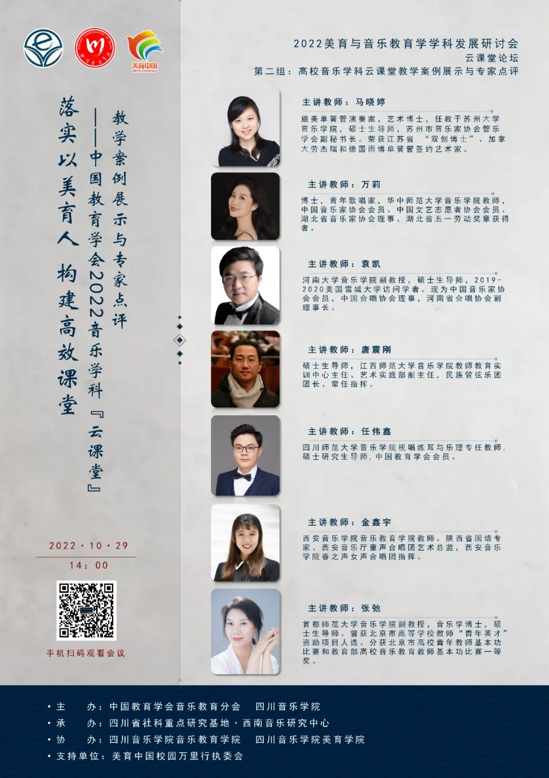 据悉,本次活动还是“2022年美育与音乐教育学学科发展研讨会”的重要组成部分。10月29日,在研讨会首日举办的“云课堂论坛”上,河南大学、首都师范大学、西安音乐学院、江西师范大学、四川师范大学、苏州大学、华中师范大学的七个优秀教学案例进行了线上展示,包括《中小学合唱作品排练》《管弦乐器专业课:演奏实践研究(单簧管)》《声乐:中国民歌》《中国民族音乐》《视唱练耳》《音乐课堂教学技能》《音乐文化》等课程,线上观看达4457人次,袁凯老师代表河南大学音乐学院作教学案例展示。应大会邀请,我院陈家海教授对线上展示环节进行点评,并在发言中呼吁“国家有关主管部门、音乐专家、教师应重视中小学班级合唱的建设,让班级合唱真正成为立德树人、以美育人的重要场域”,得到了中国教育学会音乐教育分会与会专家的一致认同。