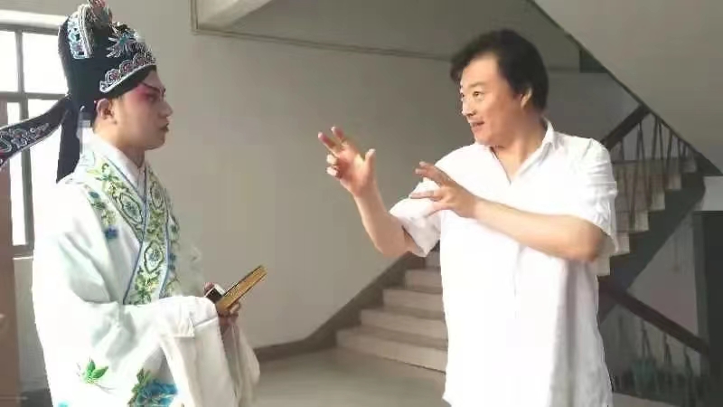 学院对此次活动高度重视,院长王思琦多次表示,戏曲是学院发展的亮点和特色,一定要重视戏曲教学师资和硬件设施的建设,要全力做好参赛学生的各项保障工作。从接到通知到提交视频仅有一个多月的时间,时间紧任务重,在导师王凯歌的详细指导下,反复商量,最终选定了豫剧《西湖公主》一折。这出戏唱功、做功并重,可以说是豫剧小生行当中的代表剧目。为了练好这出戏,靳亚军起早贪黑,早上练基本功,上午去琴房练唱,下午练身段走戏,晚上在琴房练习唱腔。整个备赛过程中,由于疫情原因,师徒不能相见,但是王凯歌老师经常半夜三更打电话指点,一招一式、唱腔吐字,均体现出师生二人的心血和智慧。此外,靳亚军受到了导师王凯歌、梁小斐老师、聂明老师的细心指导和表演专业多位同学的帮助,在大家共同努力下完成了节目排练和录制。