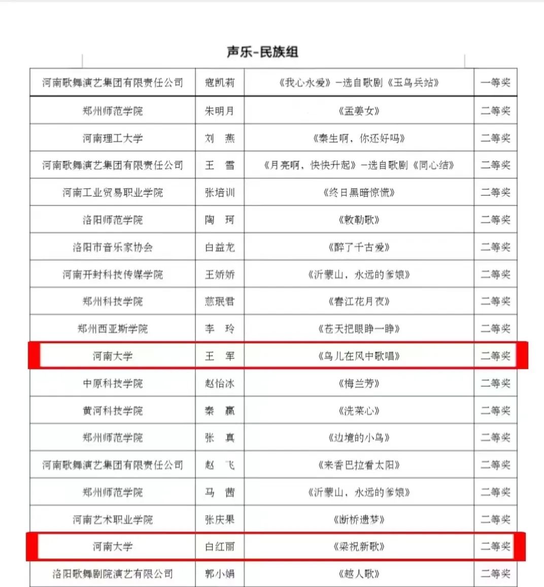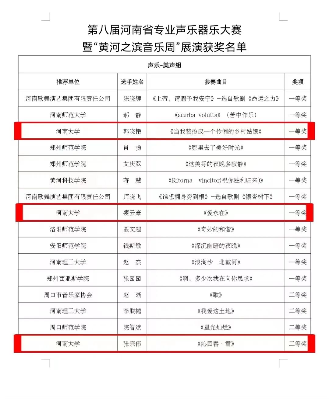 我院教师郭晓艳、张宗伟、王军,硕士生裴云豪、白红丽、张炜懿荣获声乐组奖项。