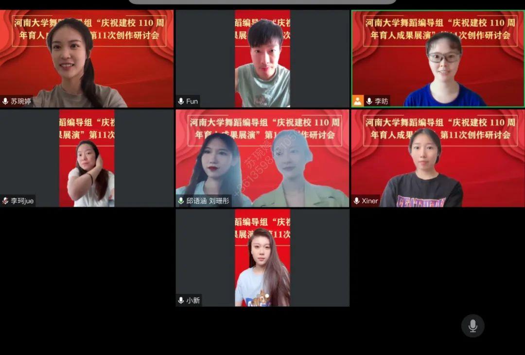 2022年7月24日,河南大学“庆祝建校110周年育人成果展演”舞蹈编导组在艺术楼510室召开第11次创作研讨会,部分参会人员线上参会。总监李昉主持并讲话。