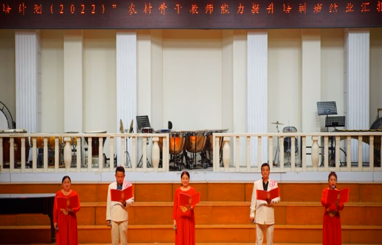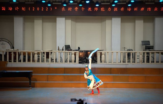 本次汇报演出风格多样,精彩纷呈。演出围绕培训课程内容和中小学音乐教师技能重点,内容涵盖器乐演奏、奥尔夫教学、戏曲韵律操、中国少数民族舞蹈、声乐表演、戏曲等,较好展示了这十天的学习成果,用精彩的节目交上一份圆满的答卷。汇报演出在全体学员大合唱中圆满结束,学院领导与学员们亲切合影留念。歌声与回忆流淌在每一位观众、每一位学员心间。