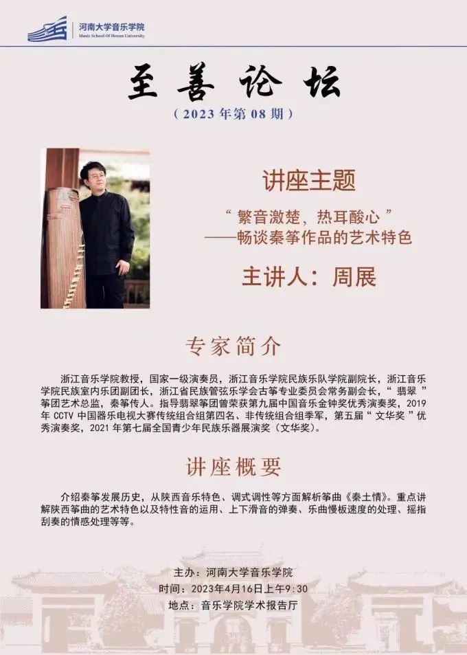 河南大学至善筝团成立于2015年,是河南省高校首个专业筝团。由河南省音乐家协会古筝专业委员会副会长、河南大学音乐学院金亚迪副教授担任团长,浙江音乐学院周展教授担任艺术指导。至善筝团以弘扬民族传统音乐为宗旨,以培养优秀古筝专业人才为目标,在教学中探索筝团对学生实践能力的锻炼和培养,充分发挥古筝的艺术魅力,繁荣校园文化生活,已成为特色鲜明、影响广泛的校园艺术品牌。在2019年CCTV中国器乐电视大赛中成功晋级非传统合组复赛、2021年荣获第二届“敦煌杯”中国民族室内乐、重奏比赛职业C组金奖,曾多次荣获河南省大学生艺术展演一等奖。