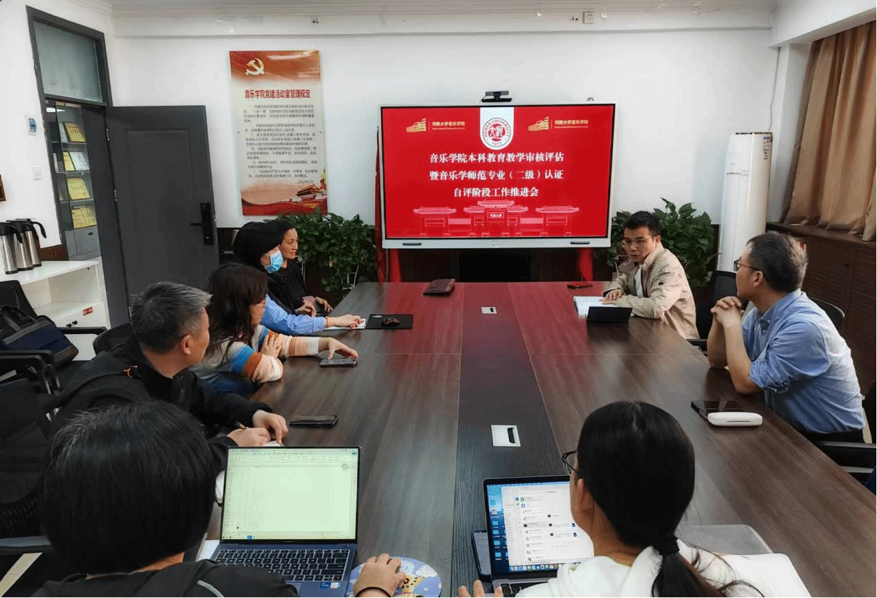 音乐学院本科教育教学审核评估及音乐学师范专业(二级)认证自评工作按照工作方案进度持续推进。这两项工作不仅关乎学院教育教学质量的提升,更是对学院办学实力和专业水平的一次全面检验。 党委书记王志国和院长王思琦多次参加推进会并表示,学院对本科教育教学审核评估和音乐学师范专业(二级)认证工作高度重视,要求各小组在分工版块内容时要及时沟通反馈,涉及相关负责领导要做好统筹协调及答疑工作。明确工作要点及文件精神深度解析的要求,要求在工作进行中把握总基调,结合实际,展现特色,高质量完成本科教育教学审核评估和音乐学师范专业(二级)认证。