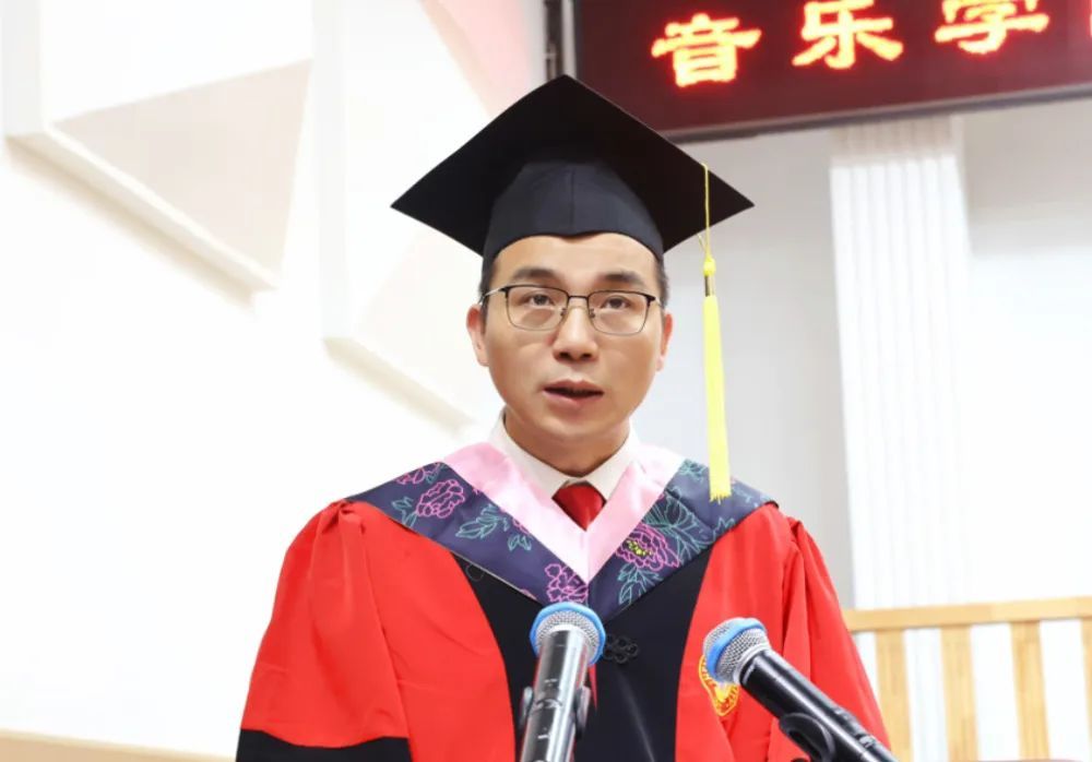 教师代表李申寄语毕业生们要保持对音乐的热爱与追求,用音乐传递正能量,为社会贡献自己的力量。