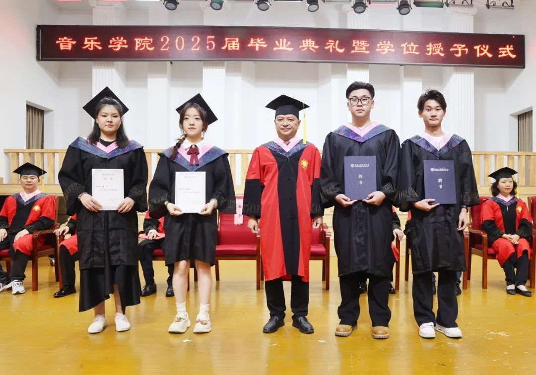 6月11日早上7点,河南大学音乐学院2025届本科生毕业典礼暨学位授予仪式在音乐厅庄重而热烈的氛围中圆满举行。学院领导、教师代表、全体毕业生及学生家长齐聚一堂,共同见证了这一重要时刻。典礼由党委副书记柴芳主持。