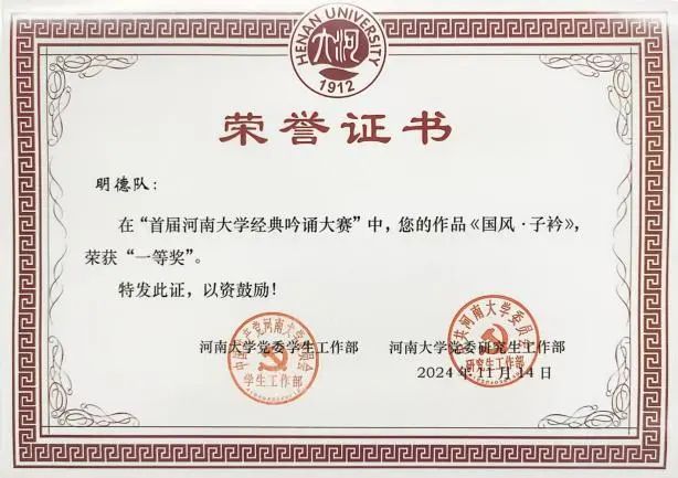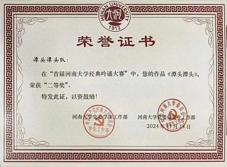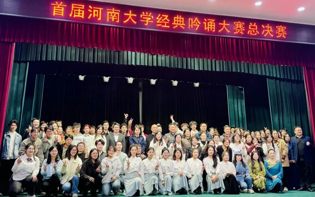 为学习贯彻习近平文化思想,传承和发扬中华优秀传统文化,展现新时代青年的精神风貌,近日,由河南大学党委学生工作部、河南大学党委研究生工作部主办,河南大学哲学与公共管理学院、洛学与宋学研究中心承办的首届河南大学经典吟诵大赛决赛在音乐学院实验剧场成功举办。我院党委副书记柴芳,副院长王聚伍,团委副书记赵瑞新亲临现场为同学们指导。