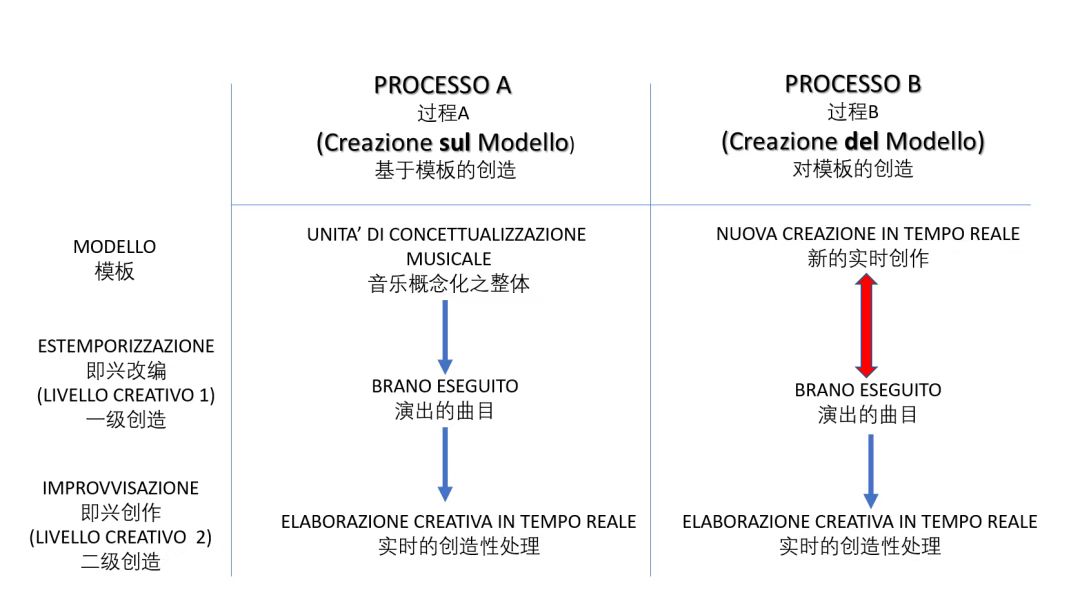 Caporaletti教授认为,以古典音乐为代表的西方艺术音乐是通过主-客分离的视觉认知模式加以理解和诠释的,即是以音乐文本(乐谱)为媒介而产生认知活动的结果,以其理性、有序性而著称。而以民间音乐为代表的口传传统音乐则是通过综合的、主-客一体化的声韵感知认知模式来支配的。这类音乐并不受逻辑性的音乐规则指引,而是靠着“模仿”来形成表演者身体的“动作记忆”,通过主体内在的感觉和直觉机制指导实践。其强调了音乐本身以及人和音乐之间的关系。它指向的是在不同的音乐文化和语言、音乐客体与实践以及音乐概念体系中的音乐认知、音乐表演与音乐创造之间的内在关系。
