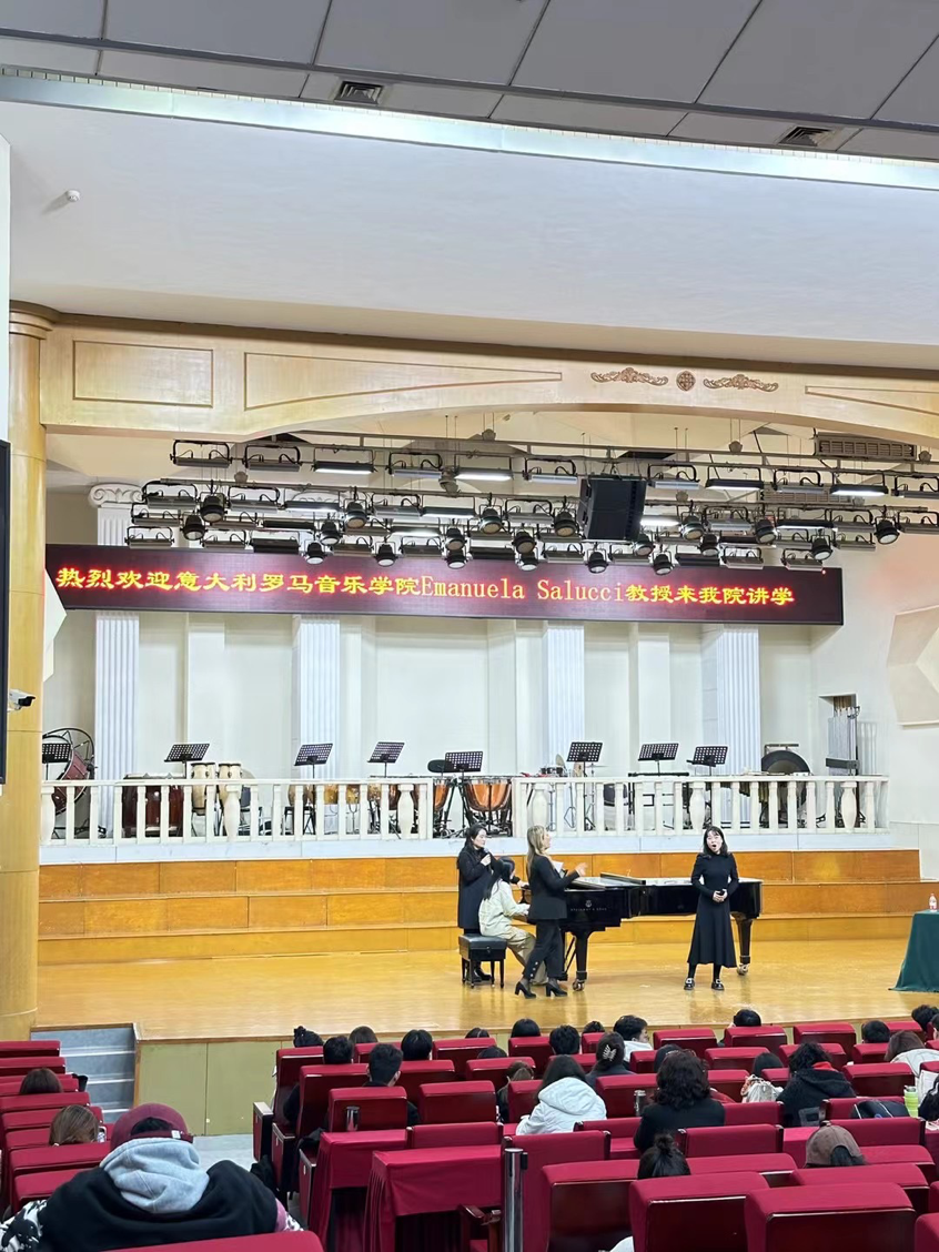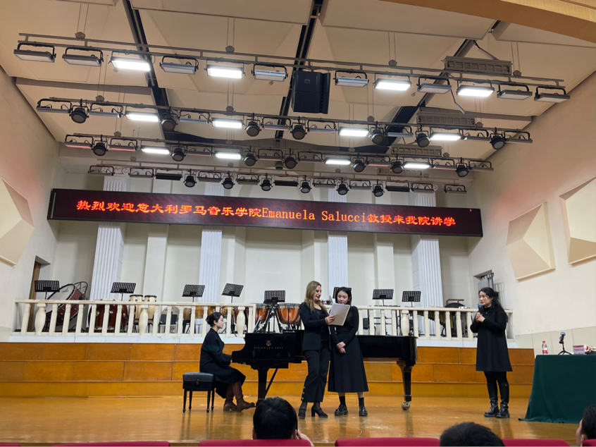 下午,罗马音乐学院Emanuela Salucci教授和Lea Pavarini教授分别在音乐厅和钢琴教研室举行了讲座公开课,学术交流活动分别由声歌系主任黄慧慧、钢琴系主任潘伟主持。