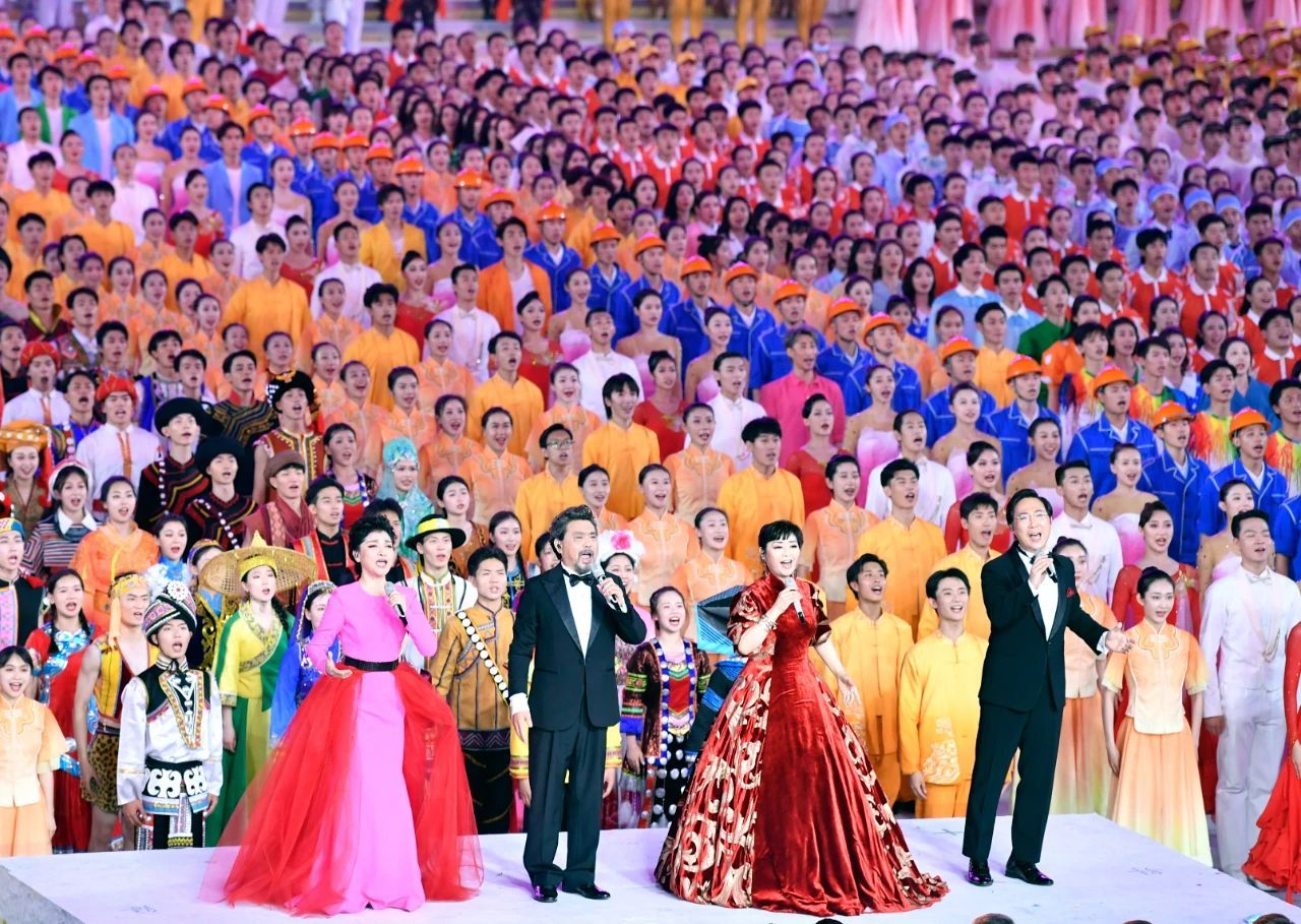 2021年6月28日晚,庆祝中国共产党成立100周年文艺演出《伟大征程》在北京国家体育场盛大举行。这是演员们演唱歌曲《领航》。新华社记者 殷博古 摄 2024年9月29日晚,人民大会堂万人大礼堂华灯璀璨、气氛喜庆。习近平等党和国家领导人同3000多名观众一起观看庆祝中华人民共和国成立75周年音乐会,共贺新中国华诞。
