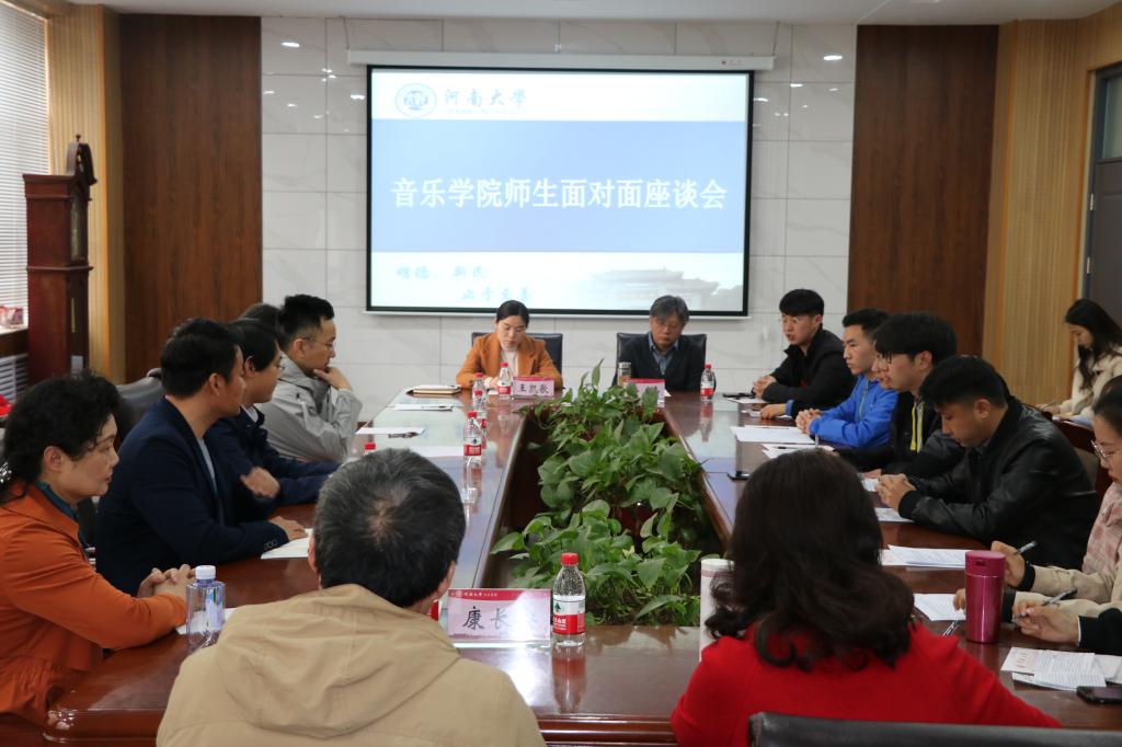 在新艺术楼一楼会议室举行 以“沟通•释惑•解忧•提升”为主题的师生“面对面”座谈会。全体学院领导、各系主任、辅导员以及各年级本科生、研究生代表参加本次会议