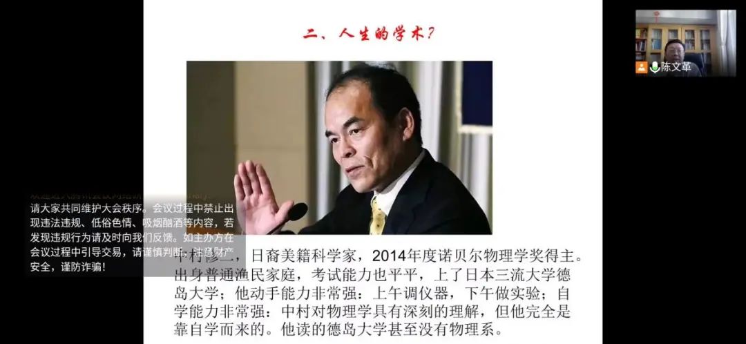 讲座上,陈文革老师运用大量的真实案例与形象的图片告诫研究生们所处的学习环境来之不易需珍惜,并向大家介绍了自己在数字“7”与“数学”等交叉学科研究,指引研究生们“要用想象力充实研究生生活”。在课程末尾之时,副院长韩梅老师进行了总结与补充,强调了艺术从业者们“形象思维与逻辑思维需并重”“想象力比固有的知识更为重要”。正如两位老师所言,研究生学习是以研究为前提与目的的,要将前人的研究成果内化于心,站在巨人的肩膀上向下扎根,向上生长。