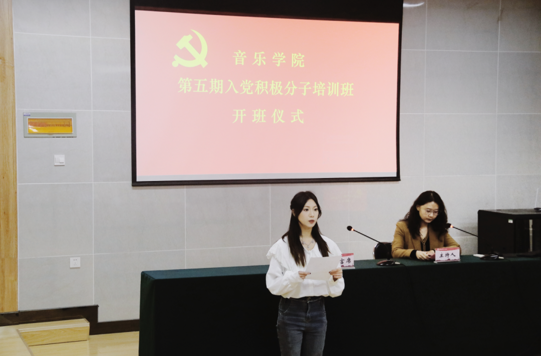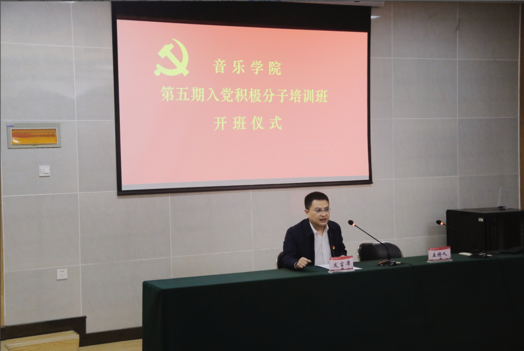 柴芳宣读了《关于举行音乐学院第五期入党积极分子培训班的决定》,通报了培训班的举办时间地点、课程内容和参训人员情况。金慧宣布了培训班的课程纪律要求和考试安排,要求学员遵守各项纪律、严格要求自己。学生代表索子暄在发言中表示一定会珍惜机会、遵守纪律、努力学习,争取早日加入党组织。