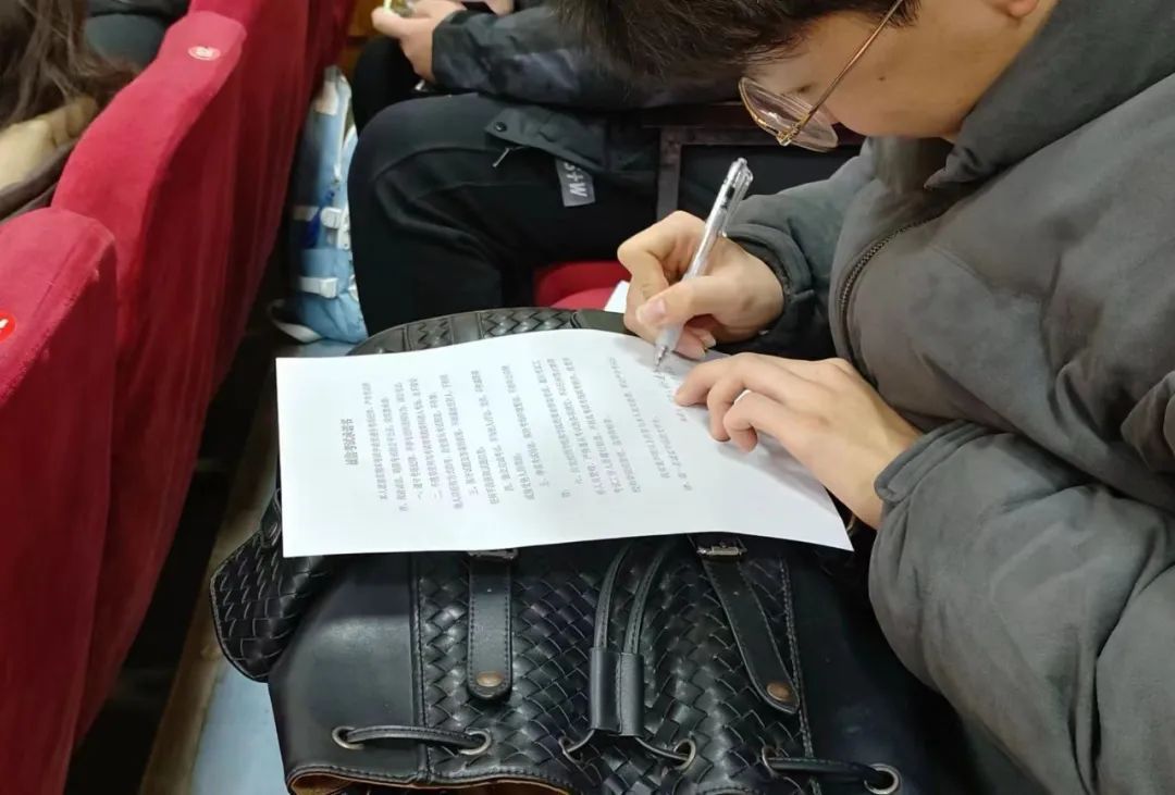 老生代表2022级齐晓彤同学向大家分享了期末考试的备考建议,号召大家考前做好复习,考试时诚实守信、拒绝作弊,让诚信常驻心中。新生代表2023级费雪儿同学进行发言,倡议同学们刻苦学习,诚信应考,用自己的辛勤汗水和真才实学取得优异的成绩。