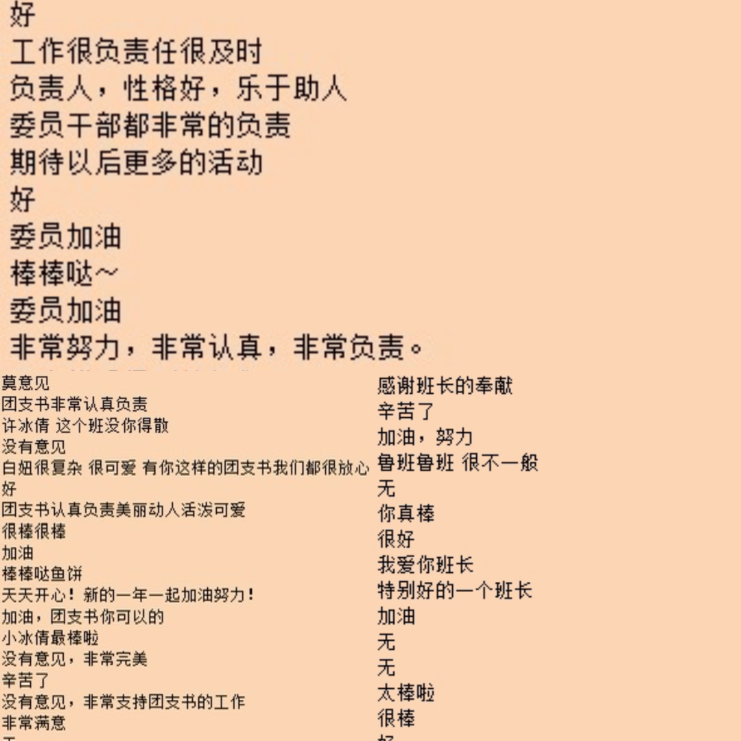 学生干部述职评议是加强绩效评价与总结反馈的有效手段,是促进班级学风建设和学生干部队伍管理的有力保障。述职评议制度的形成和完善,可以避免学生干部脱离同学,树立靠实绩站稳脚跟、以成效赢得认可的导向,使学生干部在接受广大同学监督的过程中不断完善、持续成长,不断增强自身综合素质!