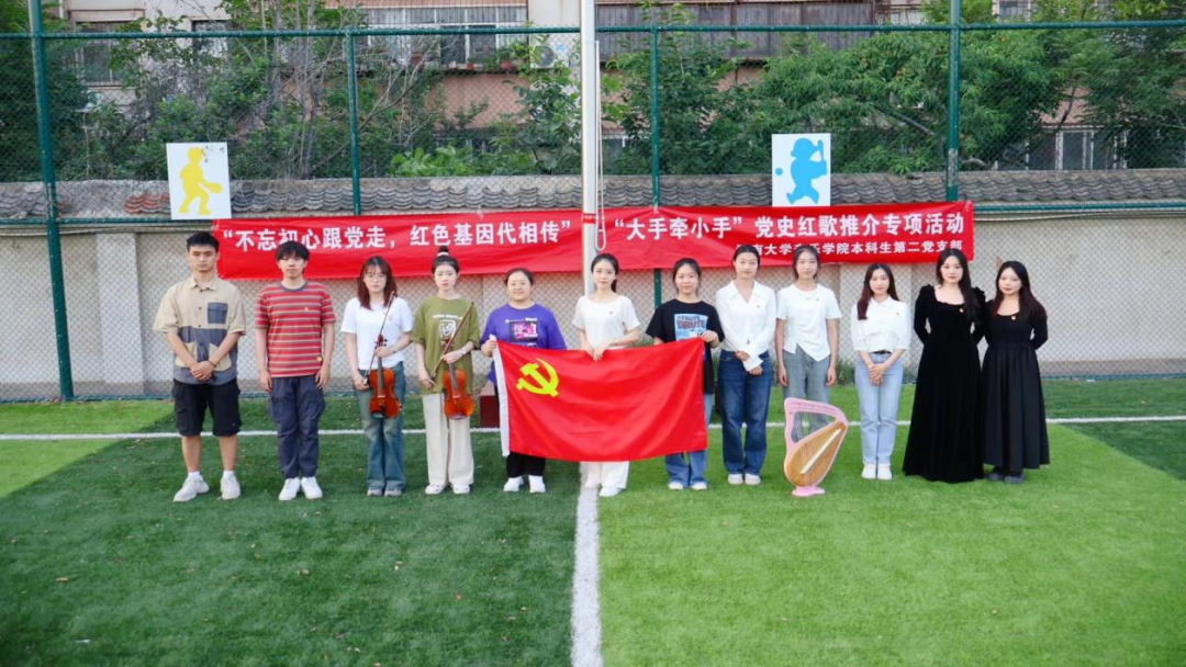 6月9日,音乐学院本科生第二党支部在支部书记李雨昕的带领下,赴中国开封SOS儿童村开展“不忘初心跟党走,红色基因代相传”—“大手牵小手”党史红歌推介专项活动。此次活动依托爱国主义教育方针,贯彻爱国主义教育,以红歌教学和欣赏的方式来正确认识党的光荣历史、伟大成就和宝贵经验,激发学生热爱祖国、热爱党的真挚情感。