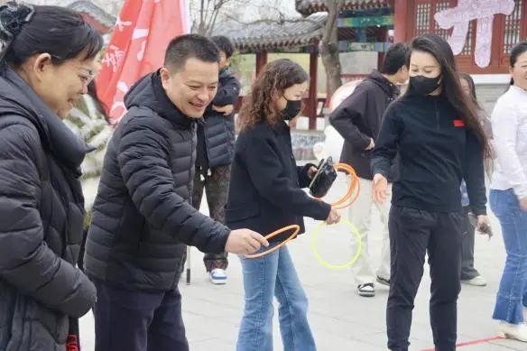 中午1时,铁塔公园春意盎然,活动在热烈的氛围中拉开帷幕。学院领导首先向全体女教职工致以节日问候。随后,趣味套圈比赛率先登场,色彩缤纷的礼品与老师们精准的投掷技巧引发阵阵喝彩。