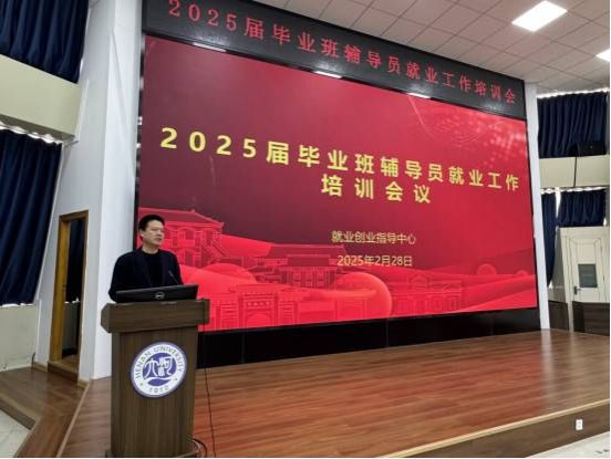 为深入贯彻落实党中央、国务院“稳就业”“保就业”决策部署,抢抓春季学期“金三银四”促就业关键期,扎实推进2025届毕业生就业工作,2月28日上午,河南大学就业创业指导中心在金明校区锥形报告厅举办2025届毕业班辅导员第二次就业工作培训会。就业创业指导中心主任李从国、学生处副处长李平、各学院及研究生培养单位毕业班辅导员、就业创业指导中心全体人员参加会议。会议由就业创业指导中心副主任栗晓文主持。