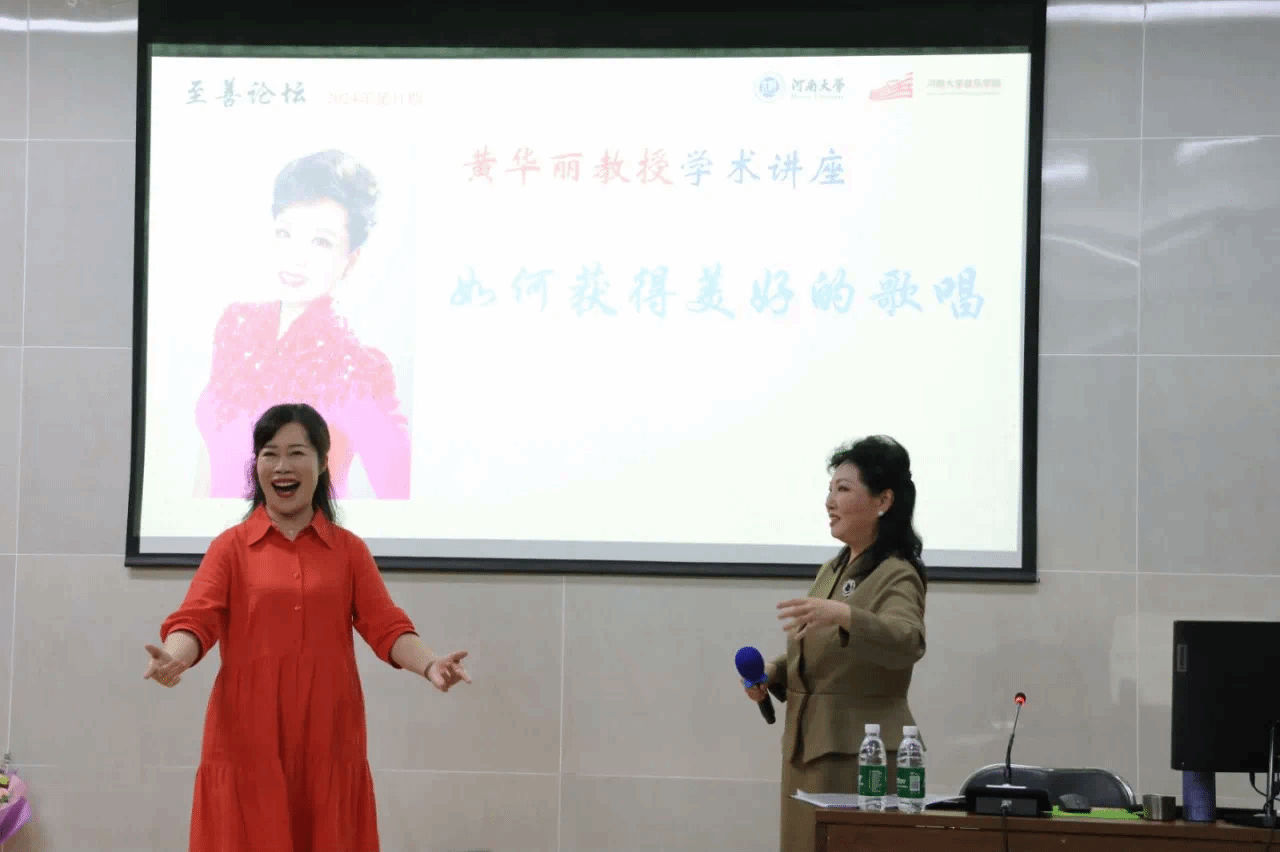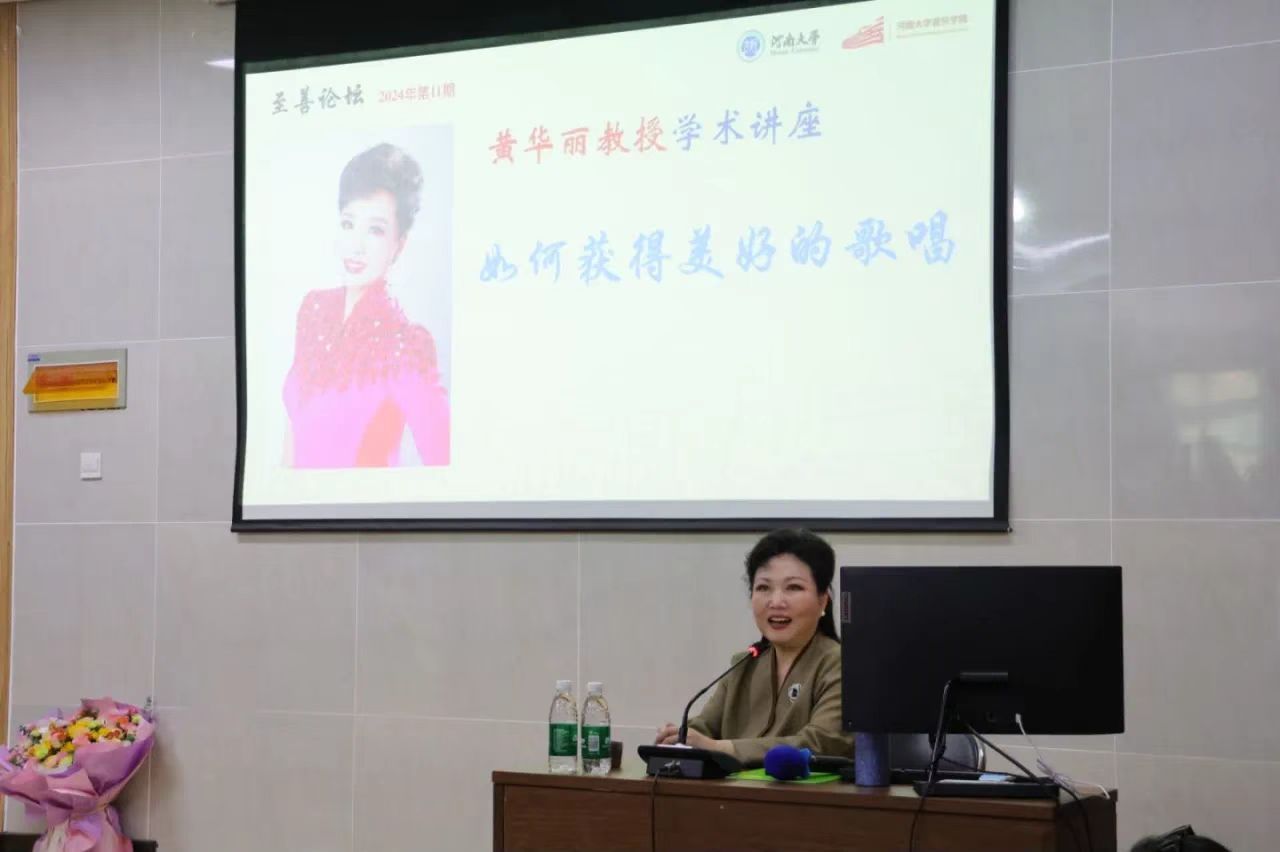 10月10日至11日,应河南大学音乐学院邀请,著名女高音歌唱家、歌剧表演艺术家、中央音乐学院硕士生导师黄华丽教授来院开展学术交流活动。10日下午,黄华丽教授在学术报告厅开展了题为“如何获得美好的歌唱”的讲座公开课。音乐学院师生及省内外声乐界同行共同聆听观摩了本场讲座,讲座由音乐学院副院长王新主持。