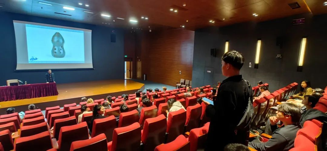 讲座的尾声,李老师介绍了陶埙的后续发展。在乐器的形制和音响方面,陶埙的音孔渐多,材质形制趋于多样,音域范围得到扩展,音乐表现力增强。但是与其他民族乐器相比,陶埙的艺术专业化程度和文化功能出现式微。在文化价值方面,陶埙作为中国音乐文化的重要载体,对于后人了解古人的审美与道德观念,了解中国古典文化精神仍然发挥着不可替代的重要作用。