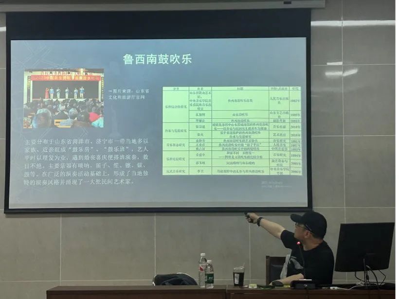 讲座伊始,杨琛教授首先从乐器学的视角为切入点,向观众阐明了“鼓吹乐”的概念,即广义上由打击乐器、吹奏乐器为主的乐种形式,包括鼓笛系乐种、笙管系乐种、唢呐系乐种等。随后,他以实地田野考察与个案研究为例,详细讲述了黄河流域(河南、山东)传统活态音乐文化的基本情况,如新密超化吹歌、鲁西南鼓吹乐等。